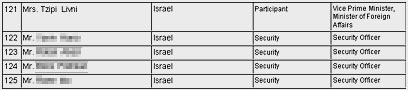 חלק מרשימת חברי המשלחת הישראלית. המאבטחים נחשפים