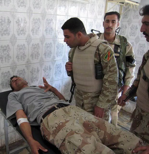 An Iraqi soldier lays in the hospital after he was injured in a roadside bomb in Baqouba,northeast of Baghdad on 13 November 2007 . A roadside bomb aimed at a passing army patrol killed two soldiers and wounded two others in the attack,police said