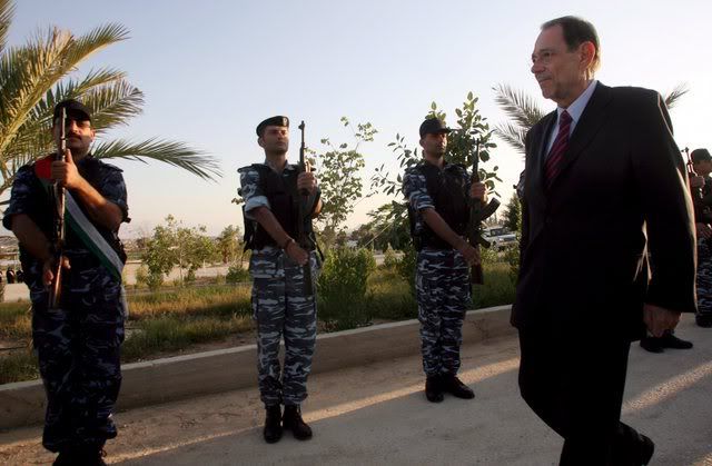 Javier Solana reviews a Palestinian police honor guard as he arrives to their training facility in Jericho, on the West Bank, on 13 November 2007. Top EU police trainers from various EU countries, including Spain, Poland and the UK, are training Palestinian Authority police in this facility. The visit comes a day after Hamas gunmen in the Gaza Strip killed some 7 members of the mainstream Fatah movement who turned out at a huge rally marking the 3rd anniversary of the death of former Palestinian President Yasser Arafat
