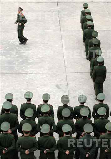 Soldiers train at a military base in Nanjing, east China's Jiangsu province, November 12, 2007. China's People's Liberation Army is taking on a new role, defending its ranks from infiltration by recruits paying bribes. PLA recruitment is conducted every winter and a "small number of ineligible youngsters" sign up through such illegal means as bribing officers involved in recruitment, the Xinhua news agency said on Monday