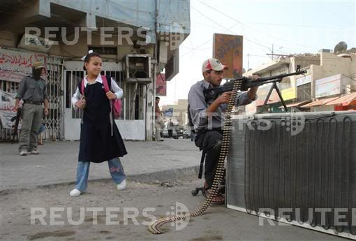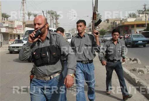 Armed local residents patrol a road in Baghdad's Adhamiya Sunni neighbourhood November 12, 2007. U.S.-Iraqi military forces allowed some 300 local residents of Adhamiya district use their weapons to conduct patrols and checkpoints, in order that they can provide security in their area and help the soldiers fight the al-Qaeda insurgents
