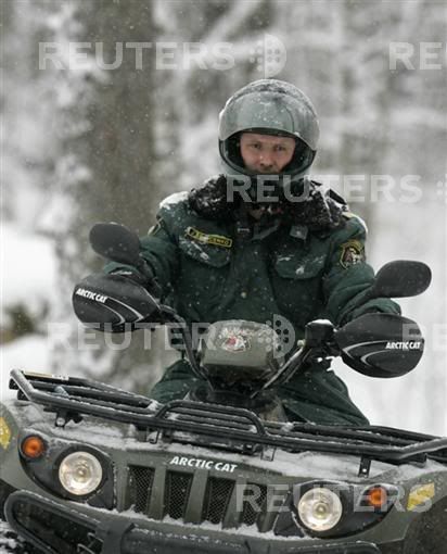 Latvian border guard Jurijs Kravcenko drives a quad during a patrol near the Latvia-Russia border in Opoli, 320 km (199 miles) from Riga November 12, 2007. Travellers will be able to drive from Riga to Rome or from Prague to Porto without once showing their passports after EU ministers agreed on Thursday to extend the bloc's border-free zone to nine more EU states from December 21. The Czech Republic, Estonia, Hungary, Lithuania, Latvia, Malta, Poland, Slovakia and Slovenia will join the so-called Schengen zone which encompasses 15 states
