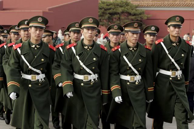 Chinese paramilitary police march at Tiananmen Gate in Beijing, China, 15 November 2007. China issued the first white paper on the nation's political party system 15 November 2007 reports state media. The document issued by the State Council of China refers to the nation's government as a 'multi-party cooperation system', fusing Marxism-Leninism with contemporary Chinese socialism. Critics such as international rights groups and foreign political parties claim that Beijing has an atrocious human rights record and that true leadership of the nation is firmly held by the Communist Party of China (CPC), not the eight other Chinese parties that have nominal power