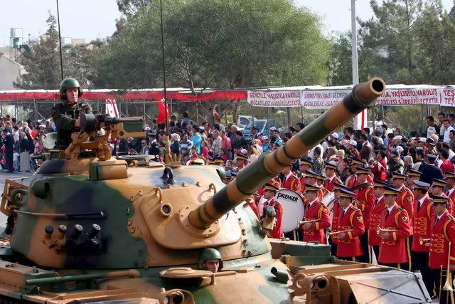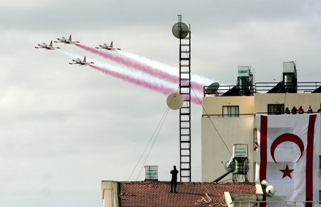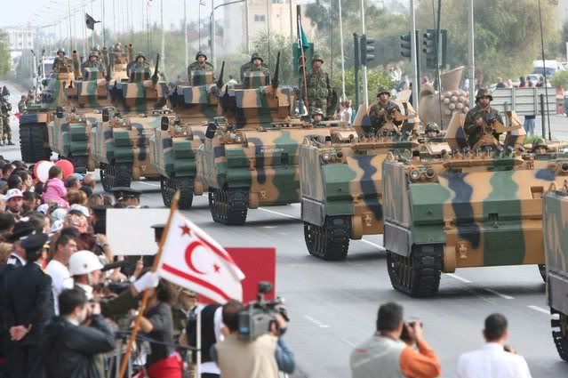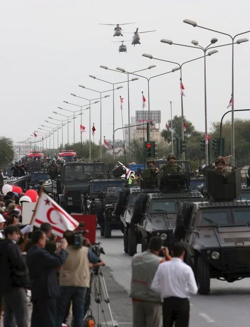 Turkish Cypriots celebrate the declaration of the self acclaimed Turkish Republic of Northern Cyprus with a huge military parade, Turkish held Nicosia, Cyprus, 15 November 2007. The island of Cyprus has been divided since the 1974 Turkish invasion