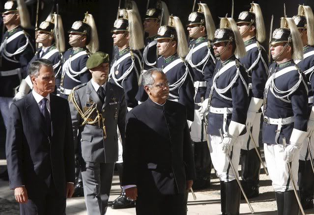 Portuguese President Anibal Cavaco Silva (L) and his East Timor's counterpart Jose Ramos-Horta (R) inspects the honour guard during the welcome ceremony at the Belem Palace, Lisbon, Portugal on 15 November 2007. Ramos-Horta is on a two-day official visit in Portugal