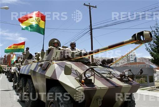Bolivian combat vehicles take part in a ceremony celebrating 197th aniversary of the Bolivian army in La Paz November 14, 2007