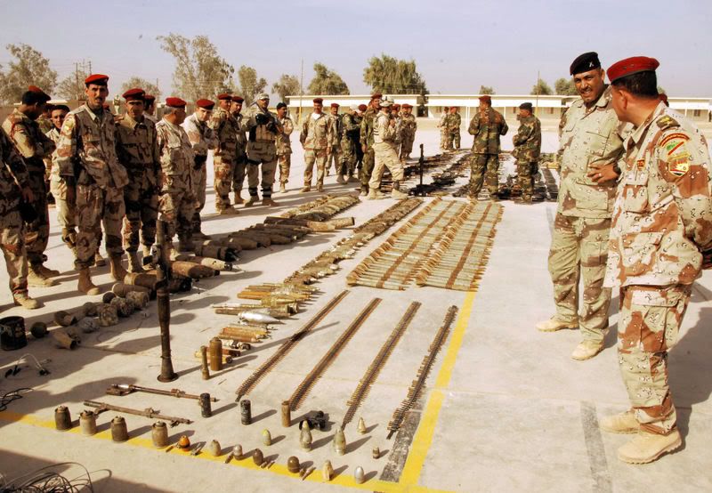 AD DIWANYAH, Iraq (November 29, 2007) - Iraqi army soldiers stand around a weapons cache that they found with in the city of Ad Diwanyah, Iraq, Nov. 19, 2007. Photo by Spc. Alan Moos, U.S. Army