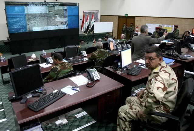 An Iraqi army officer pauses at the newly opened Iraqi national operations center in Baghdad, Iraq, 19 January 2008. The Iraqi natonal operations center began working in Baghdad Saturday, as part of an effort to better the cooperation between the country's security forces and intelligence services.