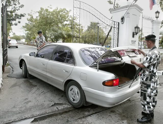 Filipino Presidential Security Guards inspect a car at the presidential palace in Manila, Philippines on 21 January 2008. The Philippine National Police went on red alert a day before militant farmers mark the 21st anniversary of a massacre of hundreds of farmers staging a demonstration in 1987
