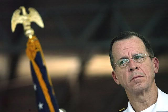 Chairman of the Joint Chiefs of Staff of the US Military Forces, Admiral Michael Mullen, is seen during a press conference at Artillery Brigade in San Juan Opico, 50 kilometers northwest San Salvador, Salvador, 18 January 2008. Mullen visited the 280 soldiers of 10th Cuscatlan Battalion who are in a special training regime to serve in Iraq in Febraury 2008