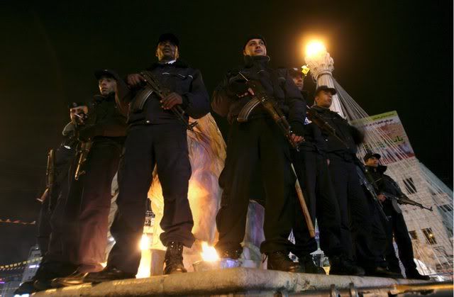 Iraqi security forces stand guard during the Ashur religious ceremony in the holy city of Karbala ,Southern Iraq on 20 January 2008. Shiite Muslim's commemorate the martyrdom of most revered saint Imam Hussein, grandson of Prophet Mohammed, in nearby Karbala to save the message of Islam
