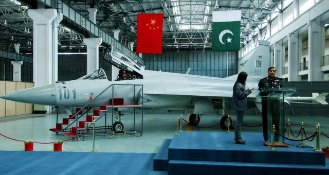 A file picture dated 12 March 2007 shows Pakistan's Air Force (PAF) Air Chief Marshal Tanvir Mahmood Ahmed (R) talking with audience during the arrival ceremony of JF-17 Thunder aircraft, jointly developed by China and Pakistan, at Pakistan Aero-nautical Complex in Kamra Pakistan. Pakistan on 22 January 2008 began production of JF-17 a multi- role jet fighter it has developed jointly with China, the air force said. he aircraft will replace Chinese-made F-7 and Mirage fighters in the fleet of Pakistan's Air Force. Each aircraft costs an estimated 15-20 million US dollars