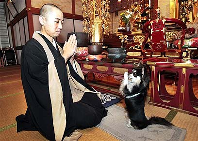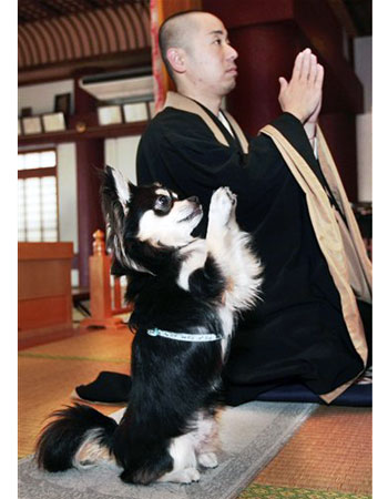 אין סוסים שמדברים עברית, אך כלבים שמתפללים ביפן כבר יש: הכלב קונאן, צ'יוואווה זכר בן שנתיים, למד להצמיד את כפותיו בתפילה לצד בעליו, הנזיר הבודהיסטי ג'ואי יושיקוני, במקדש ג'יגנין שבאי אוקינאווה