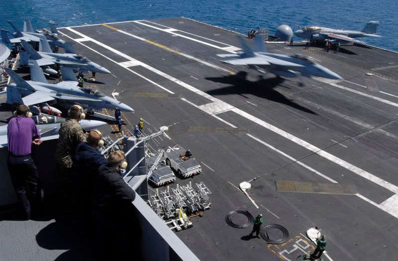Pilot Ron Iberg, retired major of the U.S. Air Force, points toward the six other members of his group while all seven Japanese Zeroes fly in formation over south Oklahoma City, on Friday, May 23, 2008, during a preview ride for this weekend's annual Star Spangled Salute Air Show at Tinker Air Force Base.