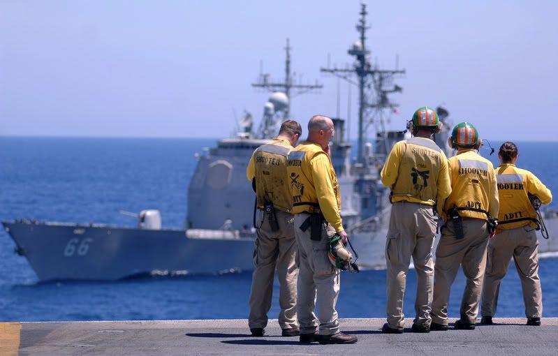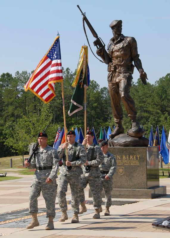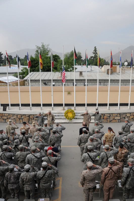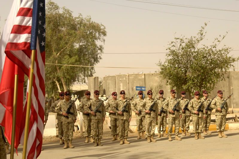 A Polish military rifle team standby to deliver a twenty-one gun salute during a Memorial Day ceremony May 26, 2008, at Camp Echo, Iraq. (U.S. Air Force photo/Airman 1st Class Matthew Plew)