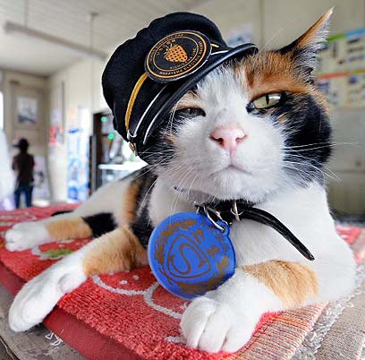 צילום יפן: החתולה טמה מביאה נוסעים לרכבת