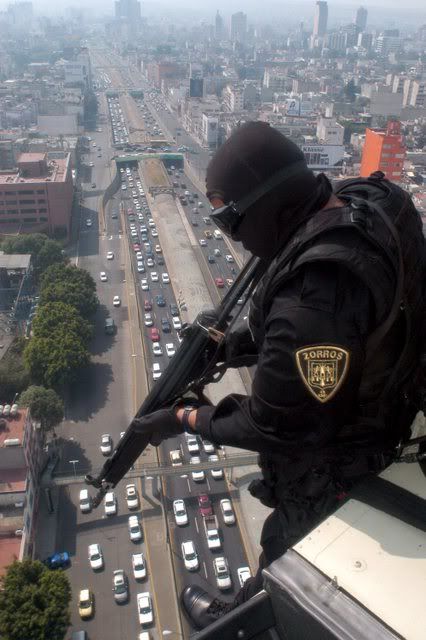Members of "Zorros" (Foxes) of the Federal District Public Security Secretary begin on 13 February 2009, flights over Mexico City with the purpose of supporting policemen on patrol and following stolen automobiles and assaults