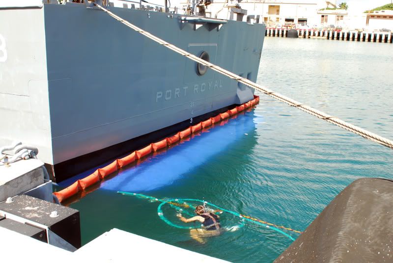 Quote: PEARL HARBOR (Feb. 9, 2009) Pearl Harbor Naval Shipyard divers prepare to inspect hull damage to the guided-missile cruiser USS Port Royal (CG-73). Port Royal ran aground on a shoal near Honolulu, Hawaii and is in port at Naval Station Pearl Harbor for a damage assessment. (U.S. Navy photo by Michael F. Laley/Released)