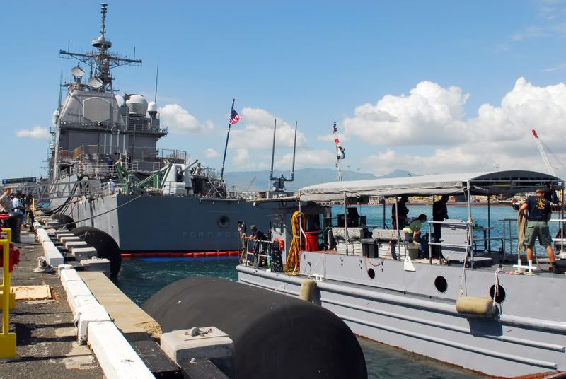 Quote: PEARL HARBOR (Feb. 7, 2009) The Pearl Harbor-based guided-missile cruiser USS Port Royal (CG 73) ran aground Feb. 5 about a half-mile south of the Honolulu airport while off-loading personnel into a small boat. The salvage ship USNS Salvor (T-ARS 52), which included an embarked detachment of Mobile Diving Salvage Unit (MDSU) 1 personnel, the Motor Vessel Dove, and seven Navy and commercial tugboats freed Port Royal off a shoal on Feb. 9. (U.S. Navy photo/Released)