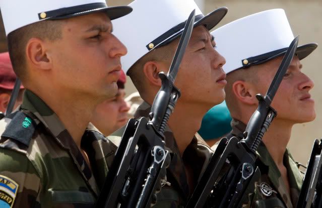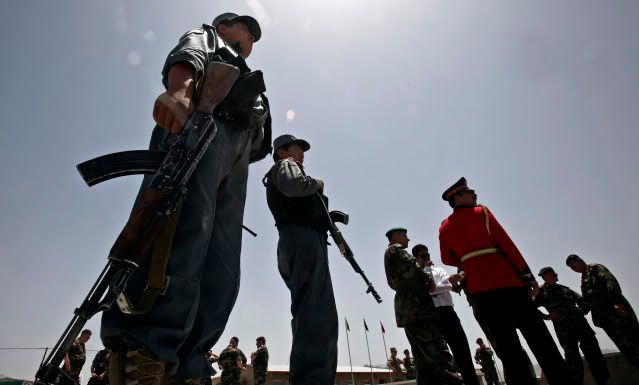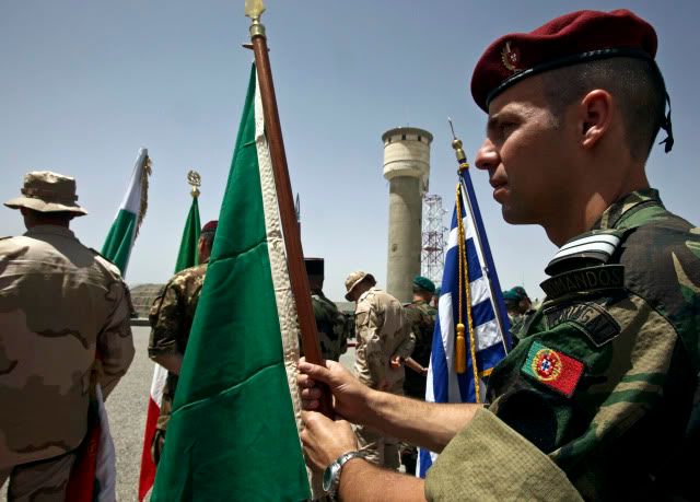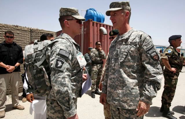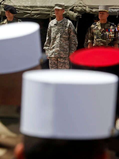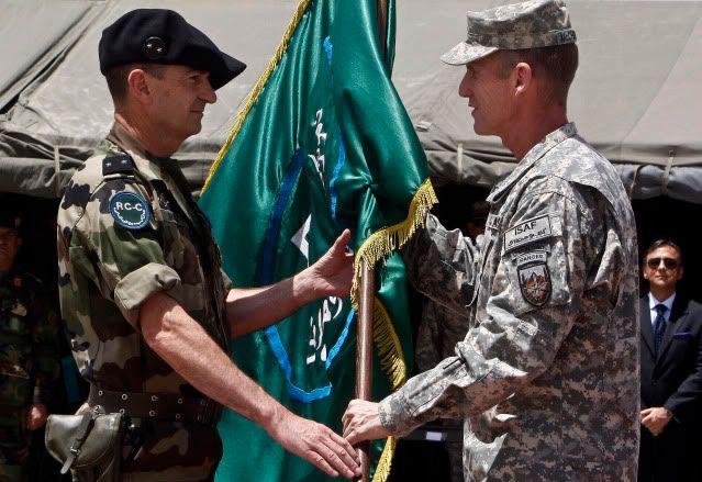 ISAF Commander, Stanley McChrystal (R) handling over the comand of the Regional Capital Comand, to the french general Maciel Druart, today''s 10th July 2009, at Camp Warehouse in the outskirts of Kabul, Afghanistan