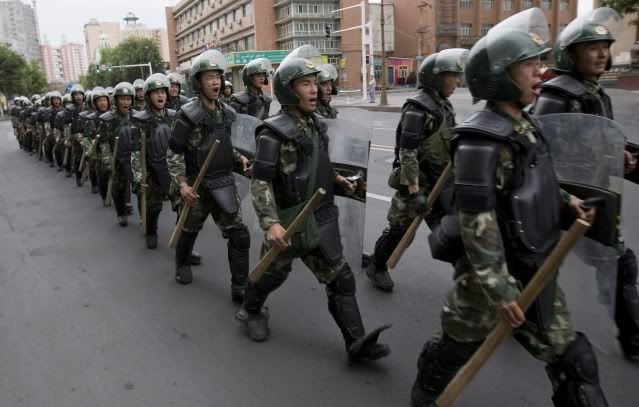 A Chinese riot police armoured vehicle passes by a mosque in Urumqi, China's farwest Xinjiang region on July 10, 2009. Mosques in the regional capital Urumqi were closed after ethnic violence in Urumqi between China's predominant Han ethnic group and Uighurs, a Muslim minority that has called Xinjiang home for thousands of years. ***** Images