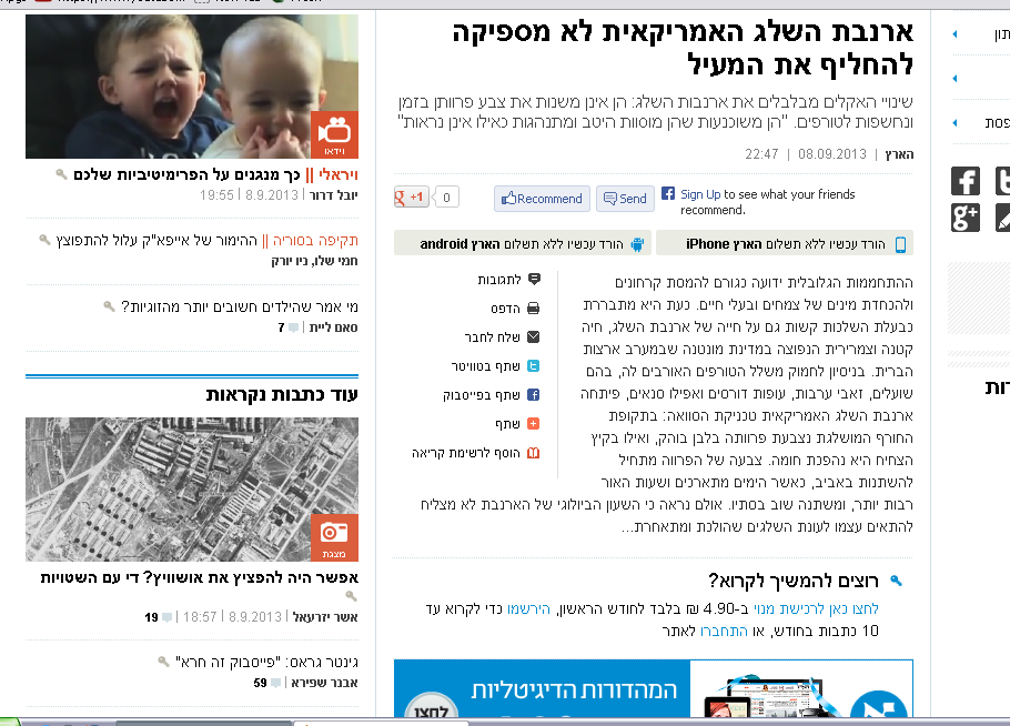 רק מה... ברפרוף על כותרות האינטרנט בארץ, נתקלתי להפתעתי בכתבה מדהימה, שהחתום עליה הוא הכתב הידוע "הארץ"... כתבה שהיא פלאגיאט מושלם (ללא קרדיט) לכתבתה של לורן סומר. זאת ועוד - בעוד הכתבה המקורית, הן מוקלטת והן כתובה, ניתנות בחינם באתר של NPR, הרי שהארץ דורש מהקורא לשלם על קריאת הכתבה...