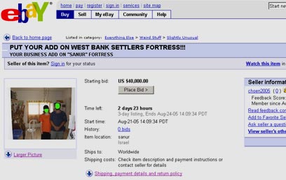 המכרז על שא-נור נגמר ב-24 באוגוסט. כך לפחות נכתב במכרז ב-eBay למכירת שטח פרסום על בניין המשטרה הבריטית הישן באזור שא-נור, ההתנחלות המיועדת לפינוי בצפון השומרון. המוכרים, האמיתיים או הפיקטיביים, מציעים את שטח הפרסום בתמורה לסכום התחלתי של 40 אלף דולר.