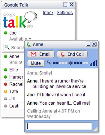 אתמול דיווח העיתון לוס אנג'לס טיימס כי התוכנה החדשה של גוגל תתחרה ישירות גם ב-Skype, החברה המובילה בתחום הטלפוניה האינטרנטית. כ-39 מיליון בני אדם משתמשים בסקייפ ברחבי העולם, ו-150,000 משתמשים חדשים נוספים מדי יום, על פי החברה. במקביל, הכריזה היום מיקרוסופט על ההשקה הרשמית של MSN מסנג'ר 7.5, תוכנת המסרים המידיים שלה.