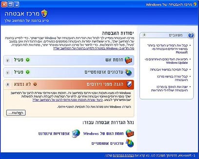 מרכז האבטחה מתריע על סיכונים המאיימים על המחשב ובמקרה הצורך יציע פתרונות נדרשים