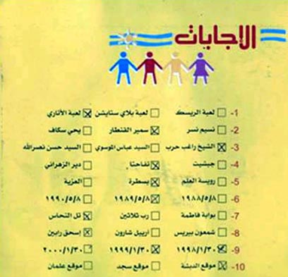 שאלון לילדי חיזבאללה (צילום: באדיבות מרכז המידע למודיעין ולטרור)
